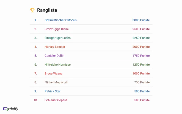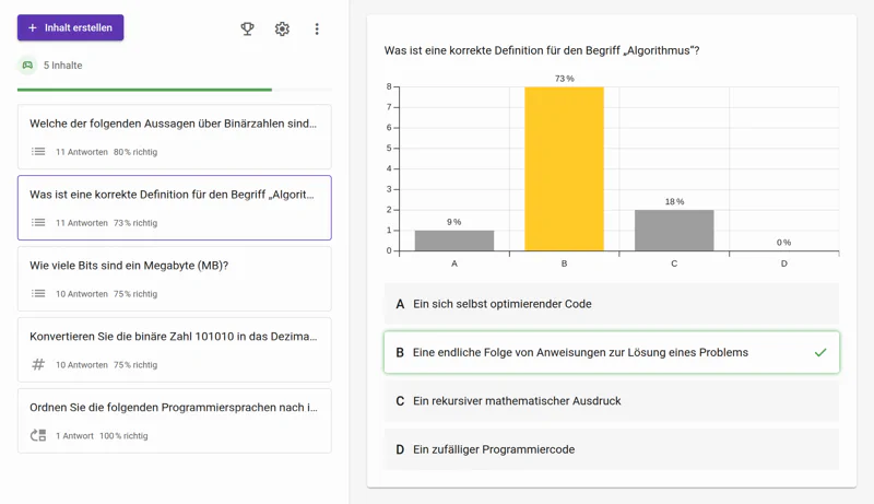 Rangliste mit Nicknames, Countdown-Timer für Fragen, neues Frageformat „Kurzantwort“, verbesserte Fragenserienverwaltung, Präsentations-Overlay