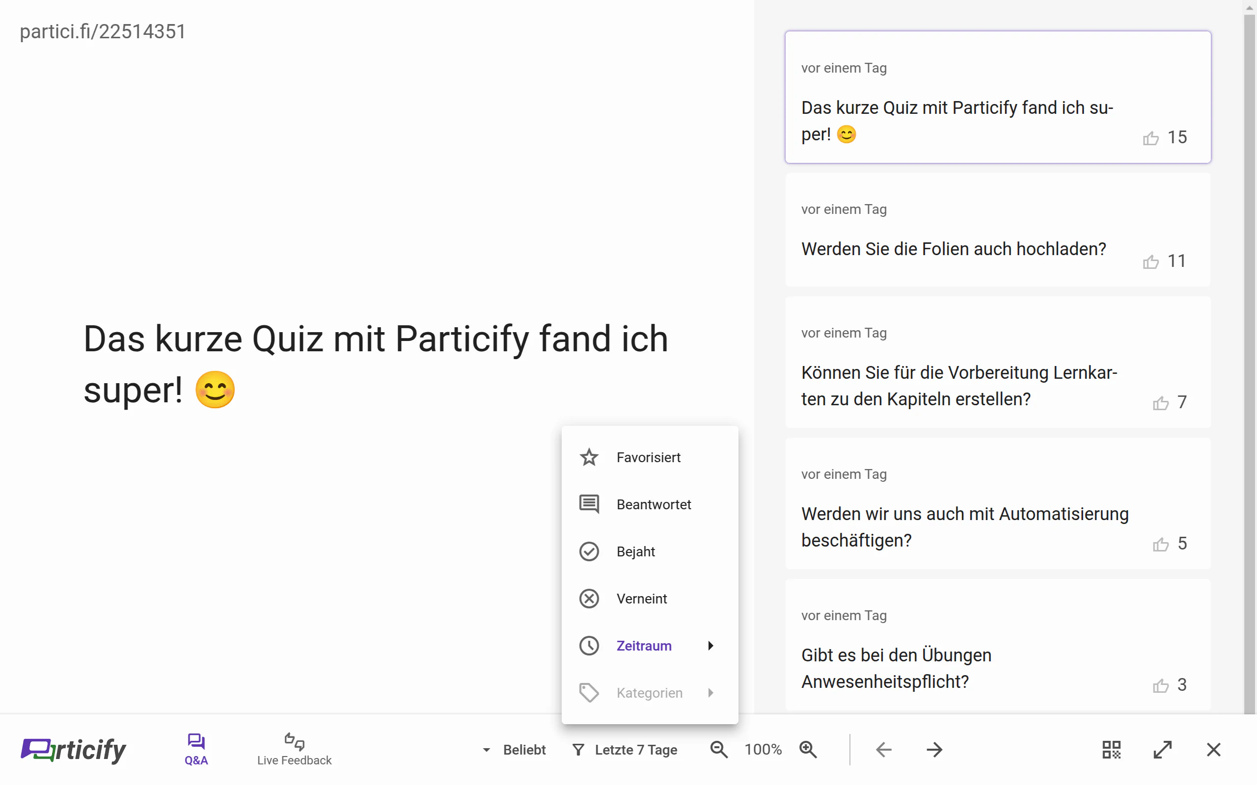 Filterung von Q&A in Präsentation