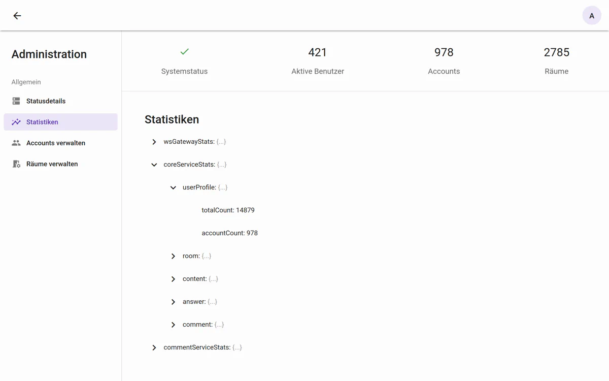 Die Instanz steht allen Angehörigen der Einrichtung zur Verfügung, sodass auch die Studierenden Räume erstellen können.