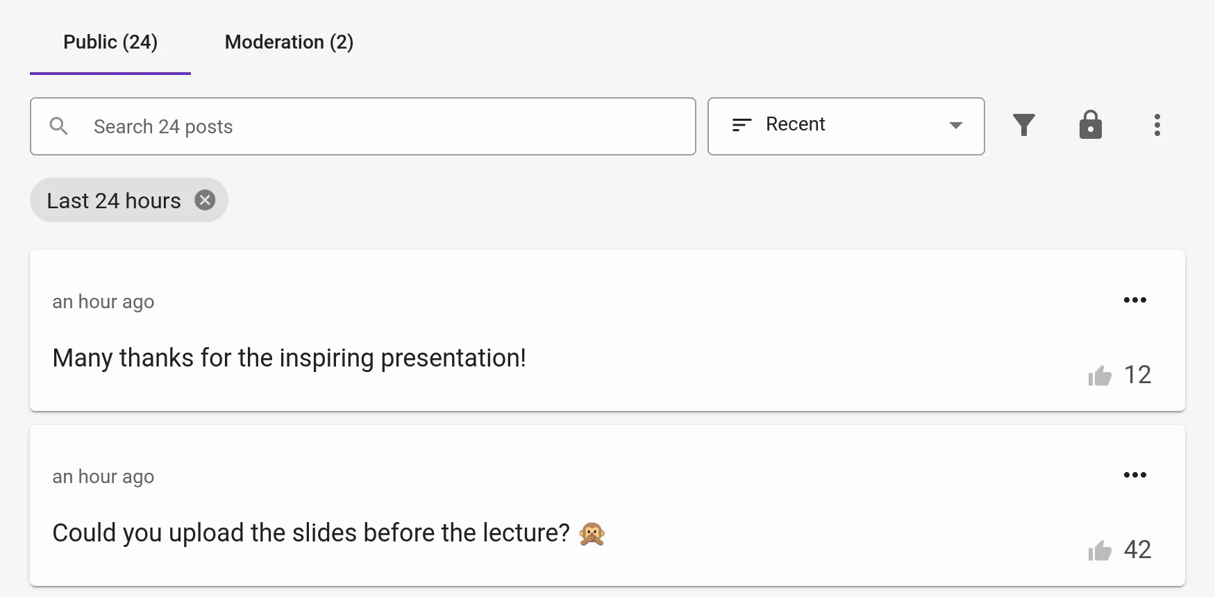 We have redesigned the search and filter bar of the Q&A function. The search bar and the current sorting are now always displayed. In addition, active filters are directly displayed and can be removed with one click.