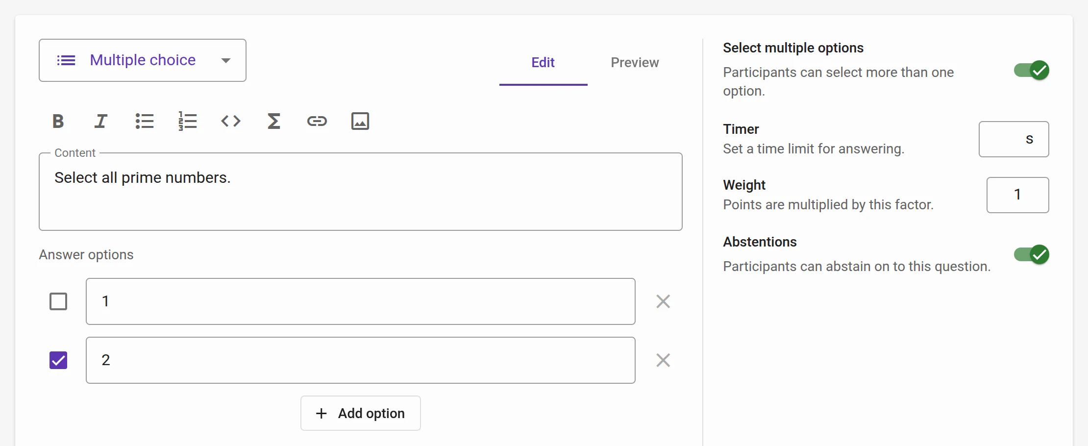 For a better overview, the settings for content are now displayed in a separate column on larger screens. Adding/editing/removing answer options has been optimized.
