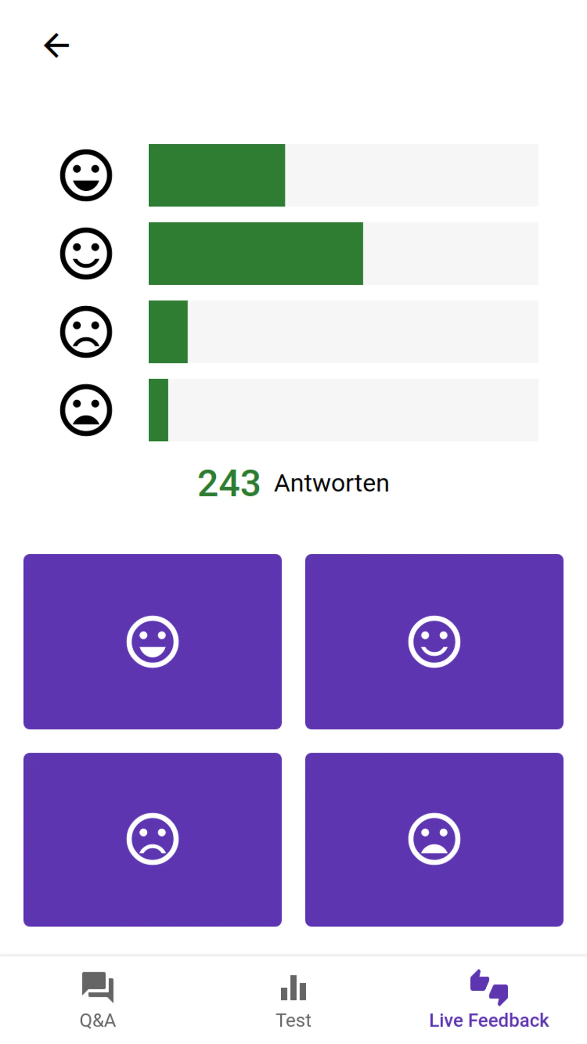 Get an up-to-date picture of the mood. Find out in a few seconds how well your audience can follow you and start a poll spontaneously.
