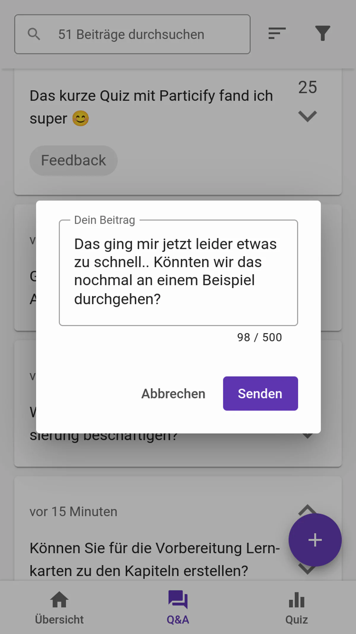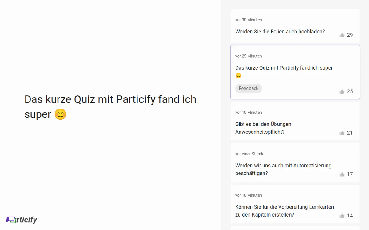 Let your audience have their say anonymously. The questions of the participants can be presented prioritized and moderated very easily.