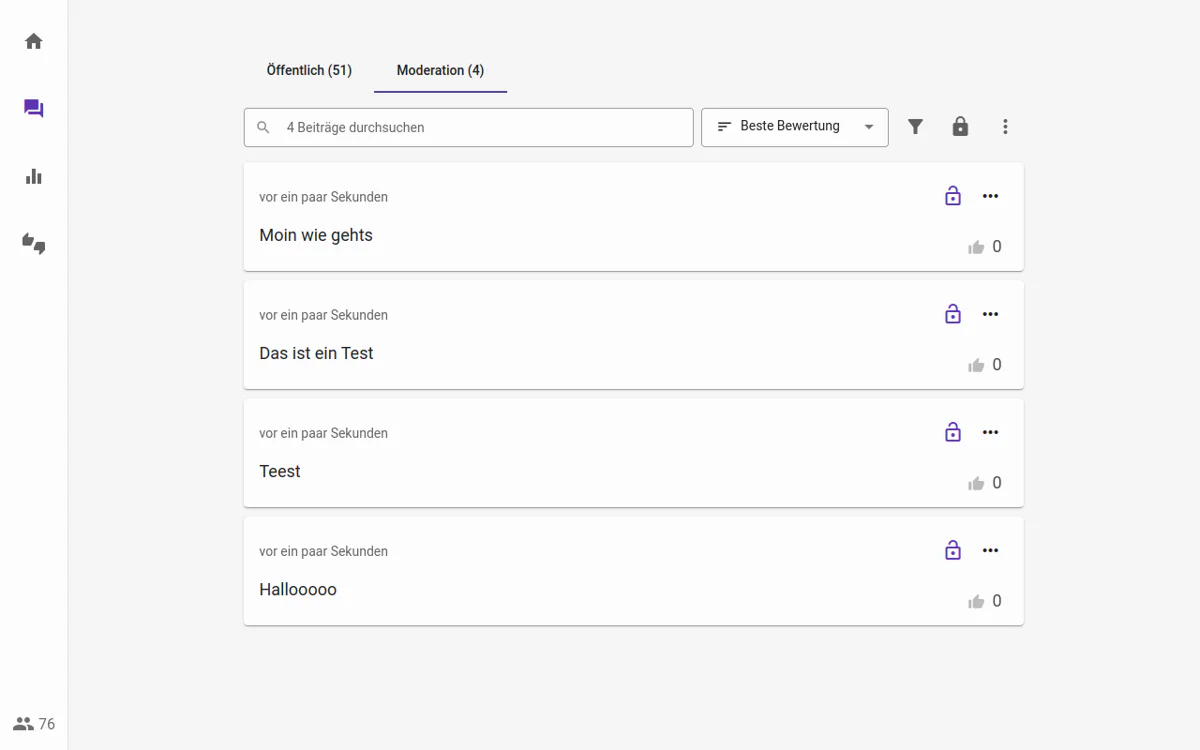 With the moderation function, only lecture-appropriate comments remain on the list or are already sorted out before publication. You can give moderation rights to multiple users.